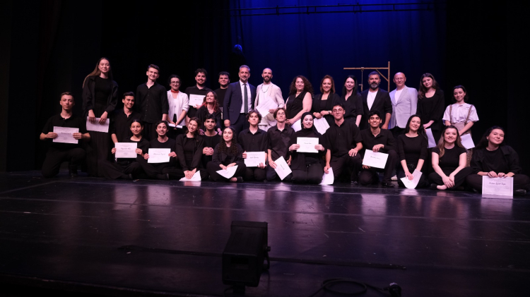 Mezuniyet töreninde, kursiyerlere emek ve başarılarını temsil eden sertifikaları takdim edilirken, alkışlarla sona eren gece, genç tiyatrocuların sahnedeki coşkusunu unutulmaz kıldı.