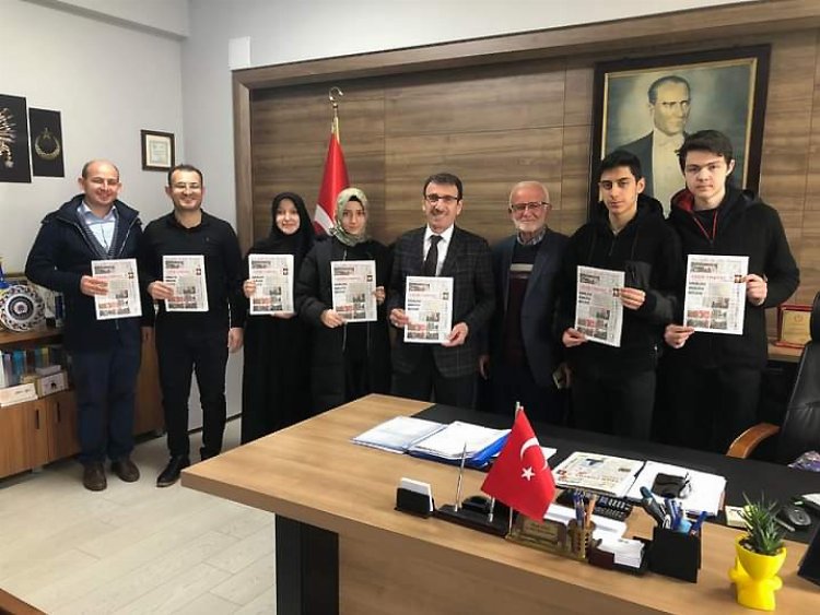Okullarında gazete çıkaran Yenişehir Ertuğrul Gazi Anadolu Lisesi öğrencileri, Belediye Başkanı Davut Aydın’ı makamında ziyaret ettiler.  Öğrenciler tarafından kaleme alınan gazeteyi inceleyen Başkan Aydın, “Öğrencilerimiz gazetenin satışında elde edilen geliri AFAD aracılığıyla deprem bölgemize bağışladılar. Öğrencilerimizi tebrik ediyorum. Çalışan üreten gençlik oldukça her zaman başarılı oluruz” dedi.