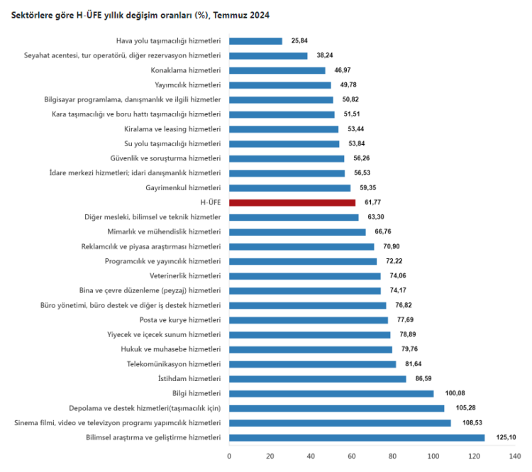 Hizmet Üretici Fiyat Endeksi’nde Temmuz ayı verilerine göre bilimsel ve teknik hizmetlerde yüzde 77,10 artış gözlendi.