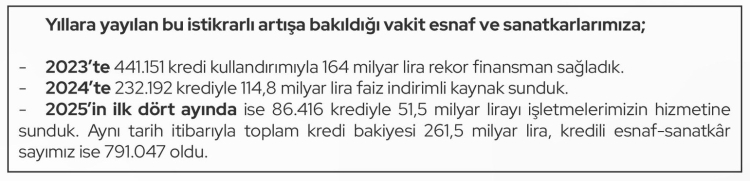 Ayrıca, 13 bin 829 esnaf ve sanatkâr, iş yeri ve taşıt edinme kredilerinden faydalandı.