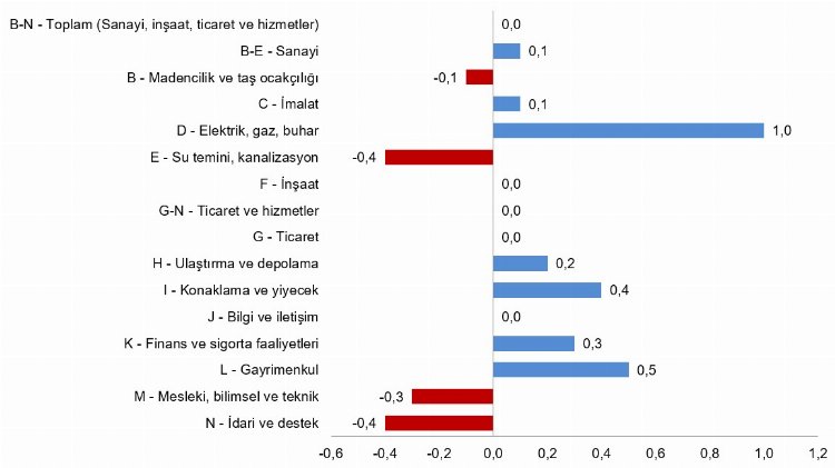 Aylık olarak alt detaylarına bakıldığında ise, sanayi sektöründe yüzde 0,1 artış gösterirken, inşaat sektöründe ve ticaret-hizmet sektöründe değişiklik olmadı.