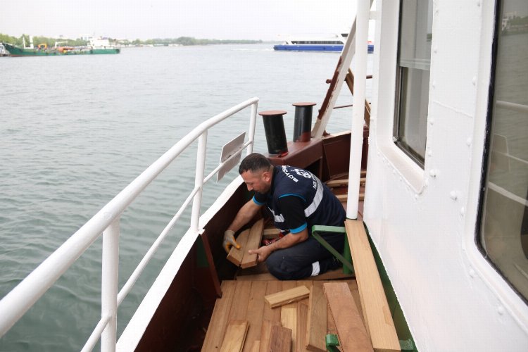 Büyükşehir’in Atatürk yolcu vapurunda bir süre önce başlayan detaylı tadilat, makine bakımları, ahşap değişimleri, gemi sac bakım onarımları devam ediyor.