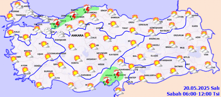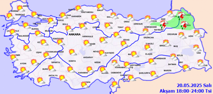 ANKARA (İGFA) – Meteoroloji Genel Müdürlüğü, 20 Mayıs Salı gününe ilişkin hava tahmin raporunu yayımladı.