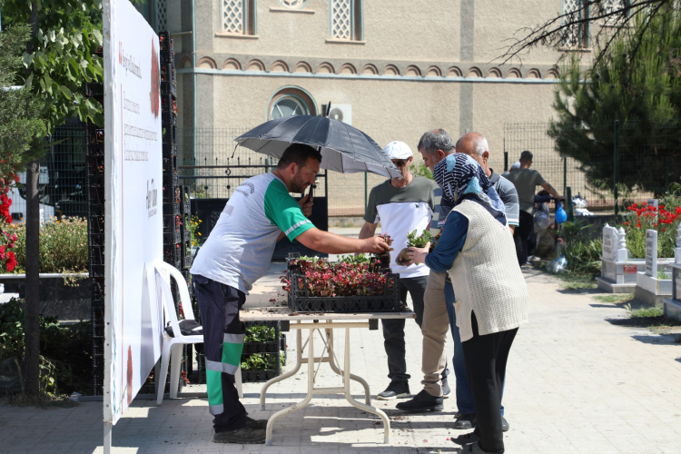 Bursa İnegöl Belediyesi mezarlıklarda 9 bin çiçek dağıttı