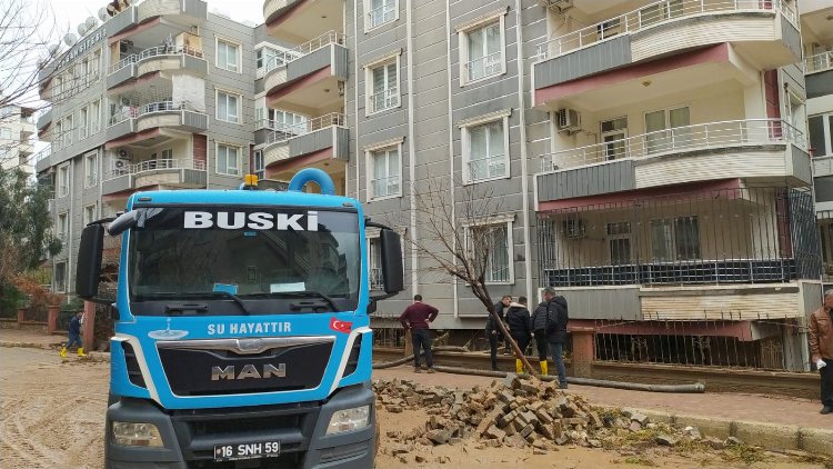 Asrın felaketinde deprem bölgelerinde canla başla çalışan Bursa Büyükşehir Belediyesi BUSKİ Genel Müdürlüğü ekipleri, selin vurduğu Şanlıurfa’da da yaraları sarmak için yoğun bir mesai harcıyor.
