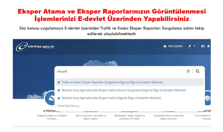 Türkiye Sigorta Eksperleri Derneği, eksper raporlarının artık e-devlet üzerinden görüntülenebileceğini açıkladı.