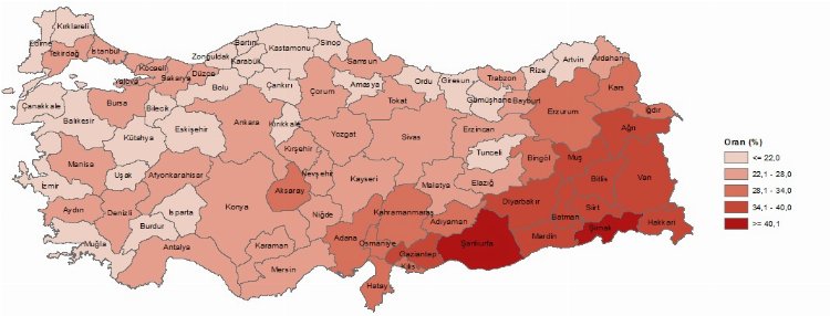 Bu arada ADNKS sonuçlarına göre illerin toplam nüfusları içindeki çocuk nüfus oranları incelendiğinde, 2022 yılında en yüksek çocuk nüfus oranına sahip olan il, yüzde 44,9 ile Şanlıurfa oldu. Şanlıurfa ilini yüzde 41,4 ile Şırnak ve yüzde 39,3 ile Ağrı izledi.