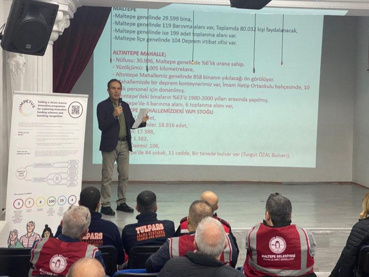 Projenin Ahmet Rasim İlkokulu’ndaki eğitim çalışmasının açılış konuşmasını Altıntepe Mahalle Muhtarı Halet Ataş yaptı. Ataş, Altıntepe Mahallesi’nde afet öncesi risklerin azaltılarak daha güvenli yaşam alanlarının oluşturulması için konunun uzmanlarıyla mahalle sakinlerini bilgilendirmeyi ve bu konuda bir farkındalık oluşturmayı hedeflediklerini söyledi. Jeofizik Mühendisi ve İstanbul Büyükşehir Belediyesi Deprem Bilim Kurulu Üyesi Prof. Dr. Haluk Eyidoğan ise olası deprem ve afet durumunun risklerini en aza indirme konusunda belediyelerin ve kamu kurumlarının ortak çalışmalar yapmaları gerektiğine değindi. Eyidoğan, Maltepe ilçesine ve Altıntepe Mahallesi’ne ait deprem ve tsunami tehlike analizlerini, kentsel üstyapı ve altyapı unsurlarının risk analizlerini paylaştı. Maltepe Belediyesi Afet İşleri Müdürü Kemal Kartalkaya ve Koordinatörü Gökhan Tükek ise katılımcıları Maltepe Belediyesi’nin afetlere karşı eğitim çalışmaları hakkında bilgilendirdi.