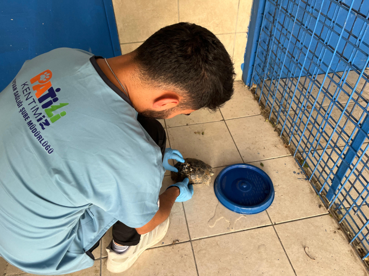 Ekipler bölgedeki yaralı bir kaplumbağaya da ilk müdahaleyi yaptı.