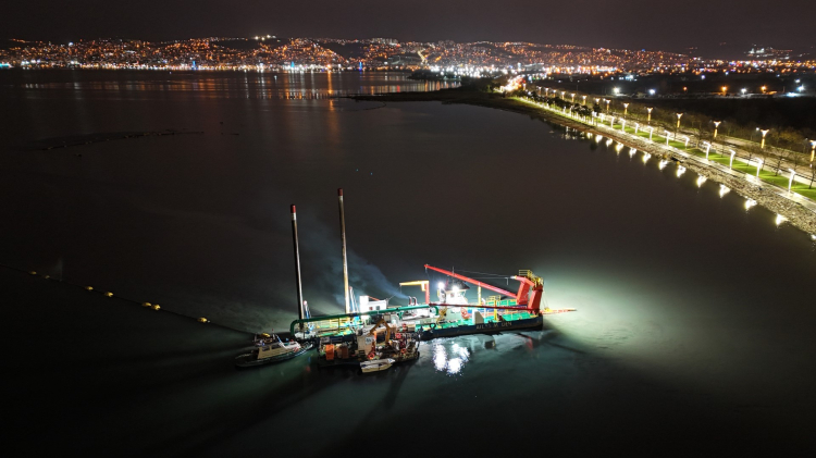 Kocaeli’nde İzmit Körfezi Dip Çamuru Temizleme Projesi 1. etap çalışmasında son geotekstil tüplerin serimi gerçekleşti.