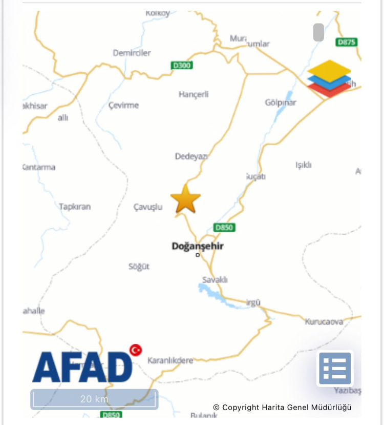 AFAD, merkez üssü Malatya’nın Doğanşehir ilçesi olan 4,6 büyüklüğünde sarsıntı kaydetti. Çevre illerden de hissedilen depremle ilgili AFAD ve ilgili kurumların tüm ekipleri saha taramalarına derhal başladı.