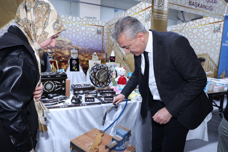MARDİN (İGFA) – Genel Sekreter Fatih Eroğlu’ndan yapılan çalışmalar hakkında bilgi alan Vali Akkoyun, fuar alanında kurulan standları gezerek esnaf ve vatandaşlarla sohbet etti.