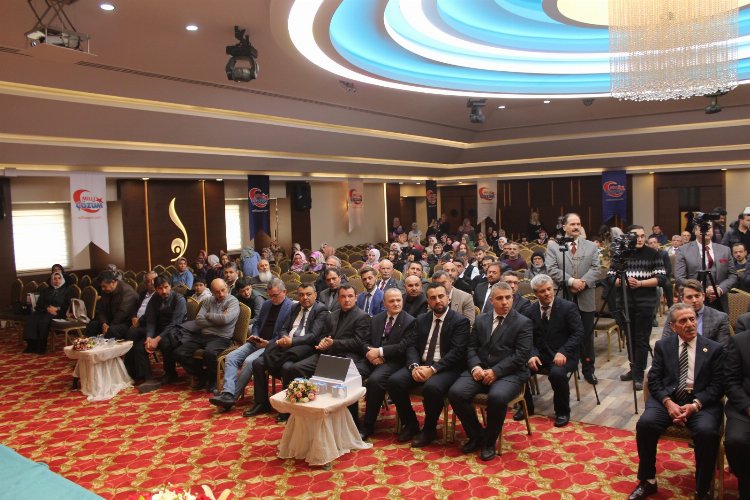 Konferans öncesinde merhum Erbakan’ın hayatından, konuşmalarından bölümlerin ve Milli Çözüm Dergisi mensuplarının deprem bölgesindeki çalışmalarının yer aldığı sinevizyon gösterimi yapıldı.