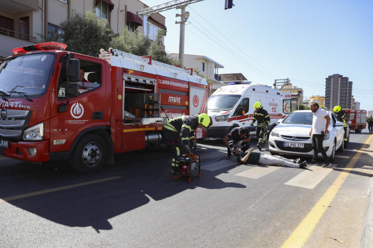 MERSİN (İGFA) – “Bir Kural, Bir Ömür” sloganıyla düzenlenen tatbikatta, iki aracın çarpışması ve bir yayaya çarpılması senaryosu gerçeğe yakın bir biçimde canlandırıldı. 112 Acil ekipleri ile Mersin Büyükşehir Belediyesi Ulaşım ve Trafik ekipleri olay yerine hızla intikal ederek profesyonel müdahalede bulundu.
