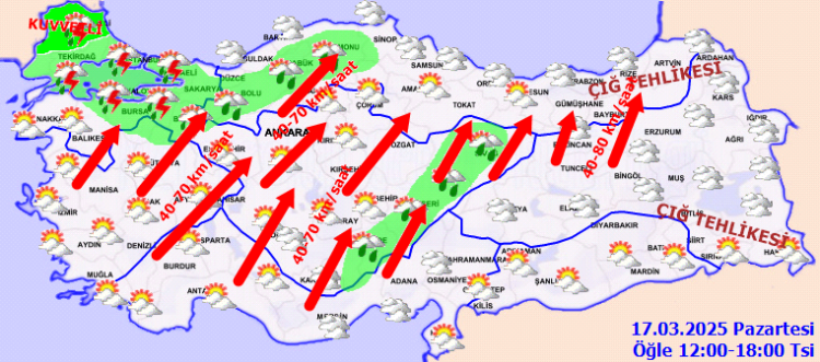 ANKARA (İGFA) – Meteoroloji Genel Müdürlüğü, 17 Mart Pazartesi gününe ilişkin hava tahmin raporunu yayımladı.