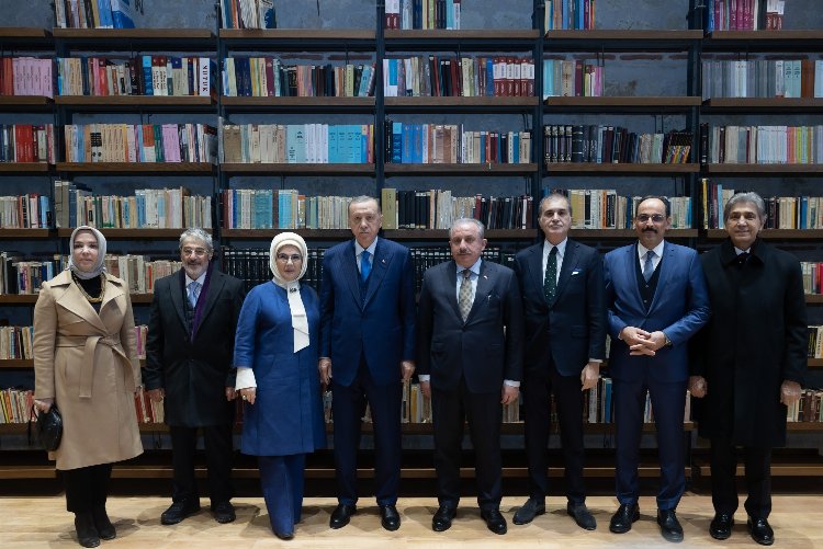 Cumhurbaşkanı Erdoğan, protokol üyeleriyle birlikte kurdele kesmek suretiyle kütüphanenin açılışını gerçekleştirdi.