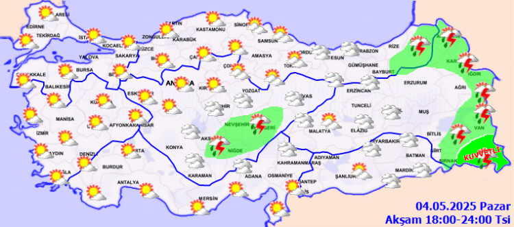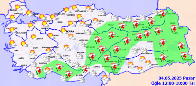 ANKARA (İGFA) – Meteoroloji Genel Müdürlüğü, 04 Mayıs Pazar gününe ilişkin hava tahmin raporunu yayımladı.
