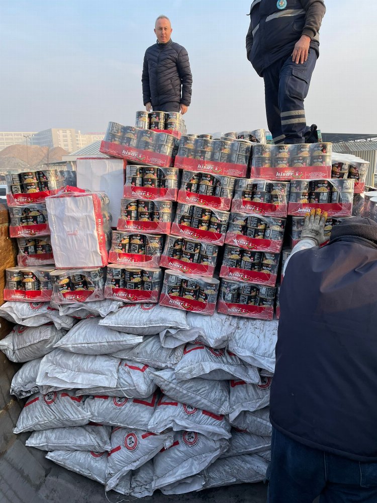 Soba, odun ve kömürün yanı sıra gıda malzemeleri de yüklenen kamyon, Hatay’ın Belen ilçesine gitmek üzere yola çıktı.