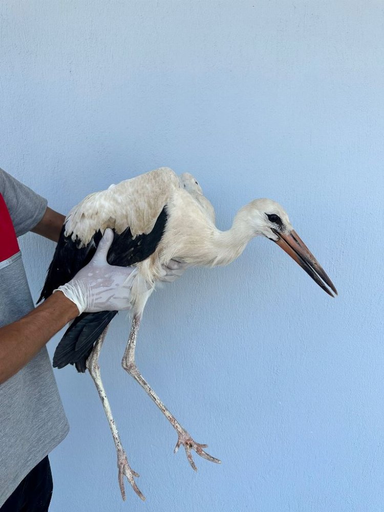 Antalya’da uçamayan yavru leylek Kumluca korumasında