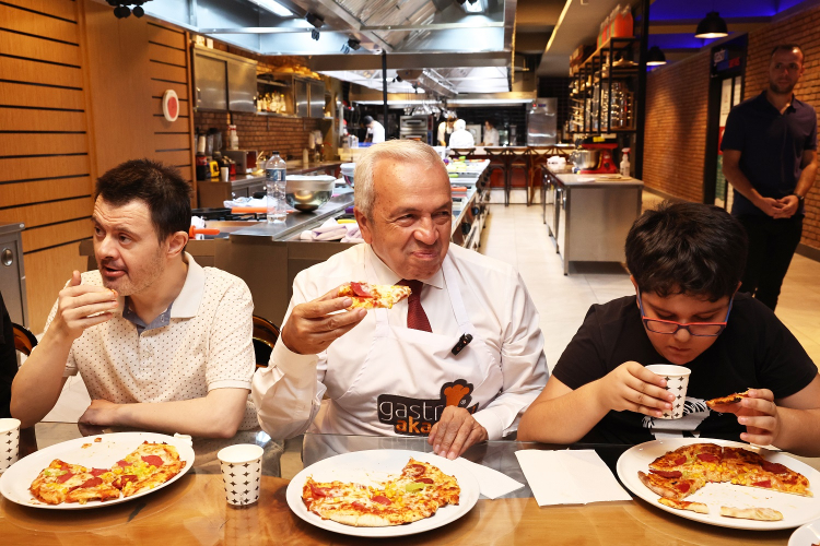 Gastro Akademi’de düzenlenen bu özel etkinliğe Nilüfer Belediye Başkanı Şadi Özdemir ve eşi Nuray Özdemir, Nilüfer Belediye Başkan Yardımcısı Okan Şahin, Gastro Grup Yönetim Kurulu Başkanı Hakan Ziya ve Coi Pizza Şirket Sahibi İrfan Yalçın katıldı. Organizasyonda eğitmenleriyle birlikte hummalı bir çalışmayla hamur yoğuran çocuklara Başkan Şadi Özdemir de eşlik etti. Özel gereksinimli çocuklar Başkan amcaları ile birlikte hazırladıkları pizzaları, hep birlikte afiyetle yediler. Pizzalarını tadarken Başkan Şadi Özdemir ile sohbet eden çocuklar, organizasyonun sonunda sertifika sevinci yaşadı.