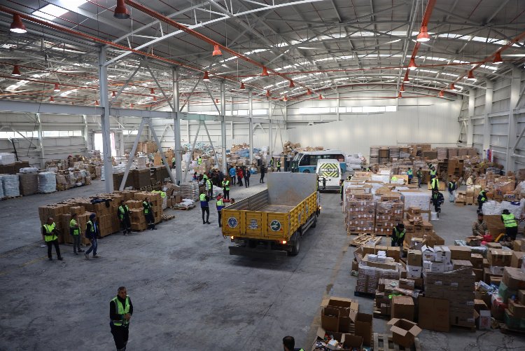 Bugüne kadar 2243 sevkiyatın yapıldığı merkezde, her gün yüzlerce kamyon ve minibüs yollara düşerek vatandaşların ihtiyaçlarına cevap veriyor.
