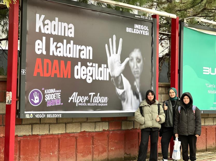 Öte yandan, İnegöl Belediyesi 25 Kasım gününün anlamını genişletme ve daha büyük kitlelere erişerek farkındalığı arttırmak adına da şehir genelinde bilboard çalışmalarıyla kadına yönelik şiddete dikkat çekti.