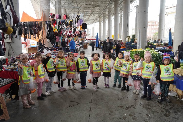 Okul her yerde etkinliği kapsamında yapılan gezide minikler ilk kez pazar alışverişi yapmanın heyecanını yaşadı.