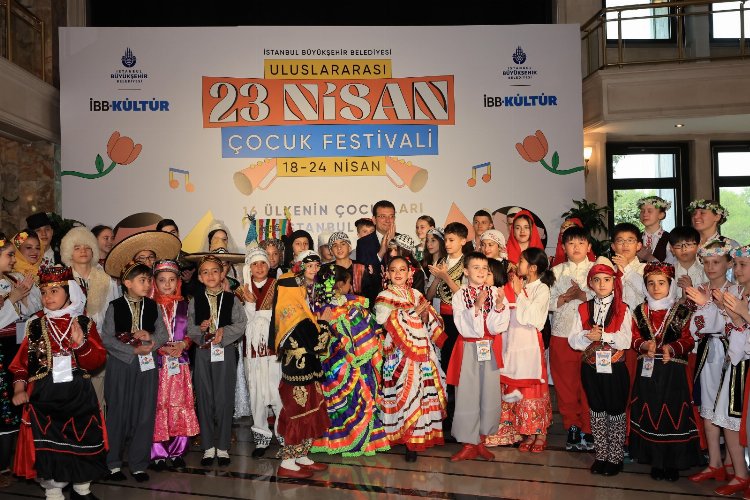 İstanbul Büyükşehir Belediye Başkanı Ekrem İmamoğlu, 15 farklı ülkeden ‘Uluslararası 23 Nisan Çocuk Festivali’ için İstanbul’a gelen çocukları, Saraçhane’deki tarihi Meclis Salonu’nda ağırladı.