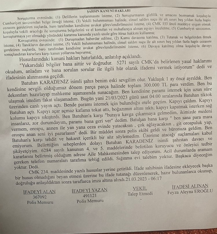 Ekranların güzel ve başarılı oyuncusu Aleyna Eroğlu, bir dönem Türk futbolunun çok şeyler beklediği ve hızlı düşüşüyle umulanı veremeyen Batuhan Karadeniz ile yaşadığı aşk sonunda mahkemenin yolunu tuttu.