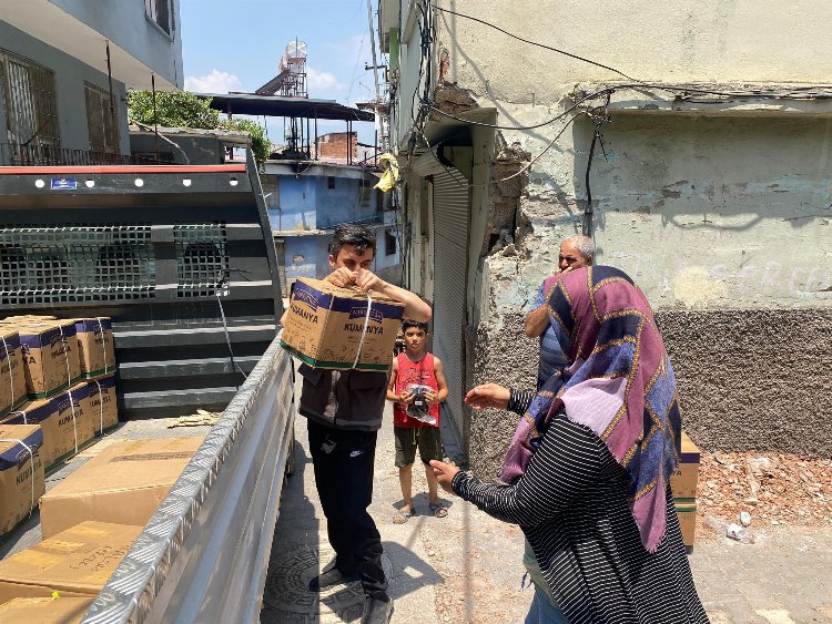Hatay’da faaliyetlerini sürdüren ekipler; depremzedelerin ihtiyaçlarını karşılamak için su ve erzak dağıtımlarını sürdürüyor. Kapı kapı dolaşan ekipler; çadır ve konteyner kentler ile ikametlerde yaşayan ihtiyaç sahiplerine yardımlarını ulaştırıyor. Ekipler yardım faaliyetleri sırasında depremzedelerin taleplerini dinlemeyi de ihmal etmeyerek kısa sürede ihtiyaçlarını gidermek için tüm imkanlarını seferber ediyor.