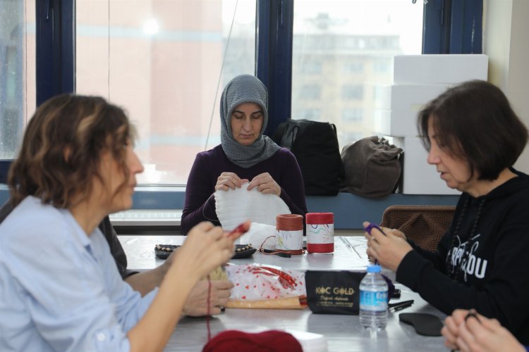 İzmit Belediyesi Kadın ve Aile Hizmetleri Müdürlüğü bünyesinde faaliyet gösteren İZMEK, deprem bölgesindeki vatandaşlar için el emeği ürünler yapmaya devam ediyor