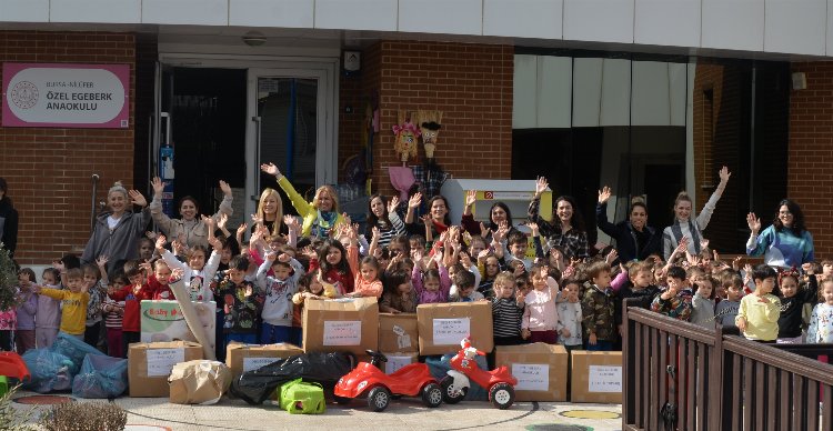 Bursa’da Özel Egeberk Anaokulu öğrencileri, depremzede çocuklar için oyuncak seferberliği başlattı. Minik yürekler, okulda toplanan oyuncakları deprem bölgesindeki kardeşlerine gönderdi.