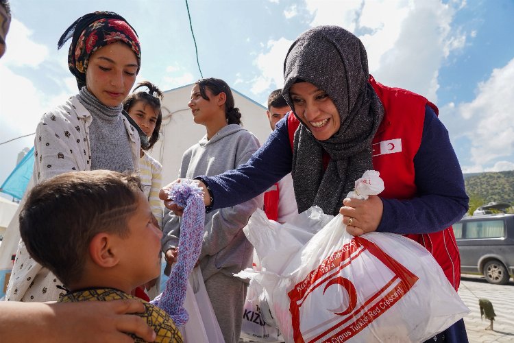 Bayram öncesi çocuklara bayramlık ve çocuk paketi dağıtan Kızılay bayramda da afetzedeleri yalnız bırakmayacak.