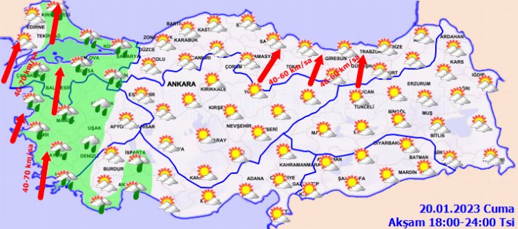 Parçalı zamanla çok bulutlu, öğleden sonra ve akşam saatlerinde bölge genelinin aralıklı sağanak yağışlı geçeceği tahmin ediliyor. Yağışların; öğleden sonra Çanakkale çevreleri ile Balıkesir’in batı kıyı ilçelerinde yerel olarak kuvvetli olması bekleniyor. Rüzgarın; güney ve güneybatı yönlerden kuvvetli (40-60 km/saat), yer yer kısa süreli fırtına şeklinde (50-70 km/saat) esmesi bekleniyor.