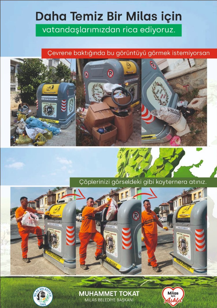 Milas Belediyesi olarak hayata geçirilen projelerle doğayı korumak, yaşanabilir temiz bir çevre oluşturmak için önemli çalışmalara imza attıklarını belirten Milas Belediye Başkanı Muhammet Tokat, “Bilinçli, çevreyi ve doğayı koruyan bir belediye olarak biliyoruz ki doğayı korumanın temelinde yaşamımızı sürdürdüğümüz, parçası olduğumuz çevreyi korumak büyük önem taşımaktadır. İlçemizde pilot bölge olarak seçilen mahallelerde akıllı sistem yerüstü çöp konteyneri projesi hayata geçirilmiştir. Konteynerlere yerleştirilen sensörler vasıtasıyla konteyner doluluk oranları yazılım sistemi üzerinden uzaktan takip edilmekte olup,  sinek oluşumu ve çevre kirliliğinin önüne geçilmekte, akaryakıt, personel gideri hususlarında tasarruf sağlanmaktadır. Vatandaşlarımızdan ricamız, çöplerini yerüstü çöp konteynerlerinin yanına değil içine atmaları yönünde olacaktır.” dedi.