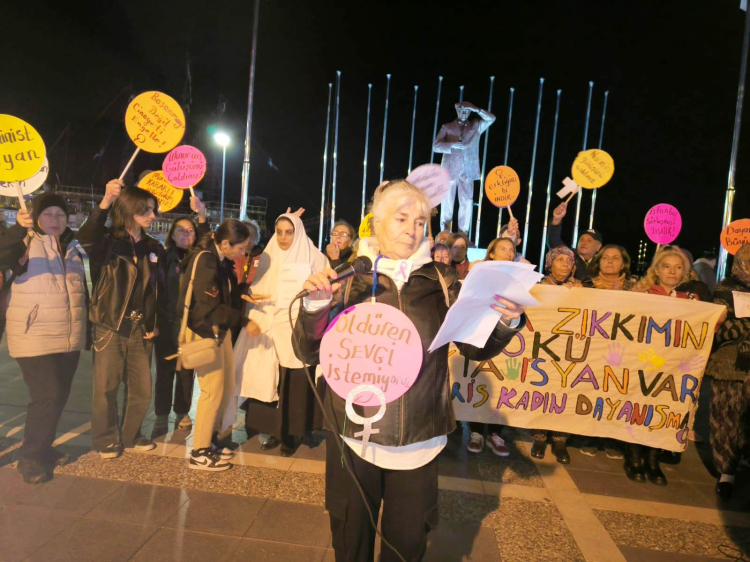 Yürüyüş sonrası Marmaris Kadın Platformu adına Atatürk Meydanında açıklama yapan sinema ve tiyatro sanatçısı Selma Sonat; Kadın cinayetlerinin özünde politik olduğuna dikkat çektiği konuşmasında, kadına yönelik şiddetin sadece bireysel bir öfke patlaması olmadığını belirterek, “Bir ailenin kültürel değerlerine ya da bir toplumun “geleneğine” indirgenemeyeceğinin, toplumun her katmanında yeniden üretilen bir şiddet biçimi olduğunun farkındayız. Bunların yıllar içinde inşa edilen bir eşitsizlik düzeninin sonuçları olduğunu hepimiz biliyoruz.Tanıyı eğmeden, bükmeden dosdoğru koymak gerekir: Kadın Cinayetleri Politiktir! Kadına yönelik şiddet bireysel bir kötülük değil, politik bir tercihtir” dedi.