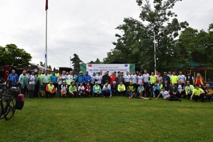 AB Yeşil Haftası kapsamında düzenlenen etkinliğe hava muhalefetine rağmen 200’ü aşkın bisiklet tutkunu katıldı.