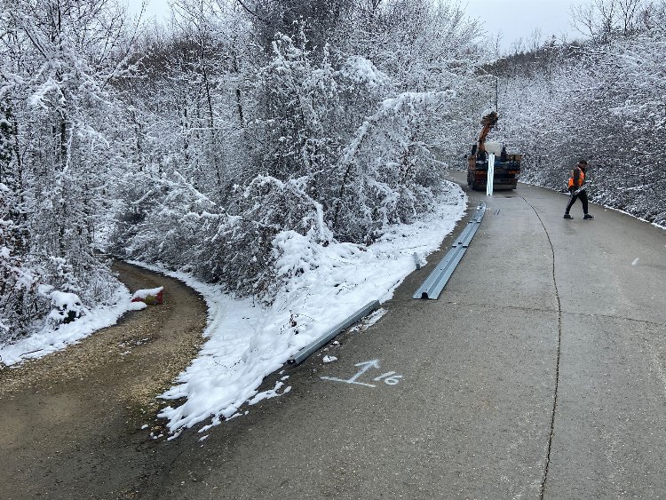 Sakarya Büyükşehir Belediyesi, can ve mal kaybını önlemek için şehrin trafik ağında özellikle kırsal bölgelerdeki virajlı yolları kar, kış demeden çelik bariyerle çeviriyor.