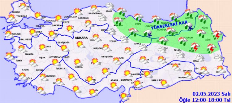 Parçalı ve çok bulutlu, bölgenin kuzeydoğusunun aralıklı sağanak ve yer yer gök gürültülü yağışlı, yükseklerinin karla karışık yağmurlu geçeceği tahmin ediliyor.