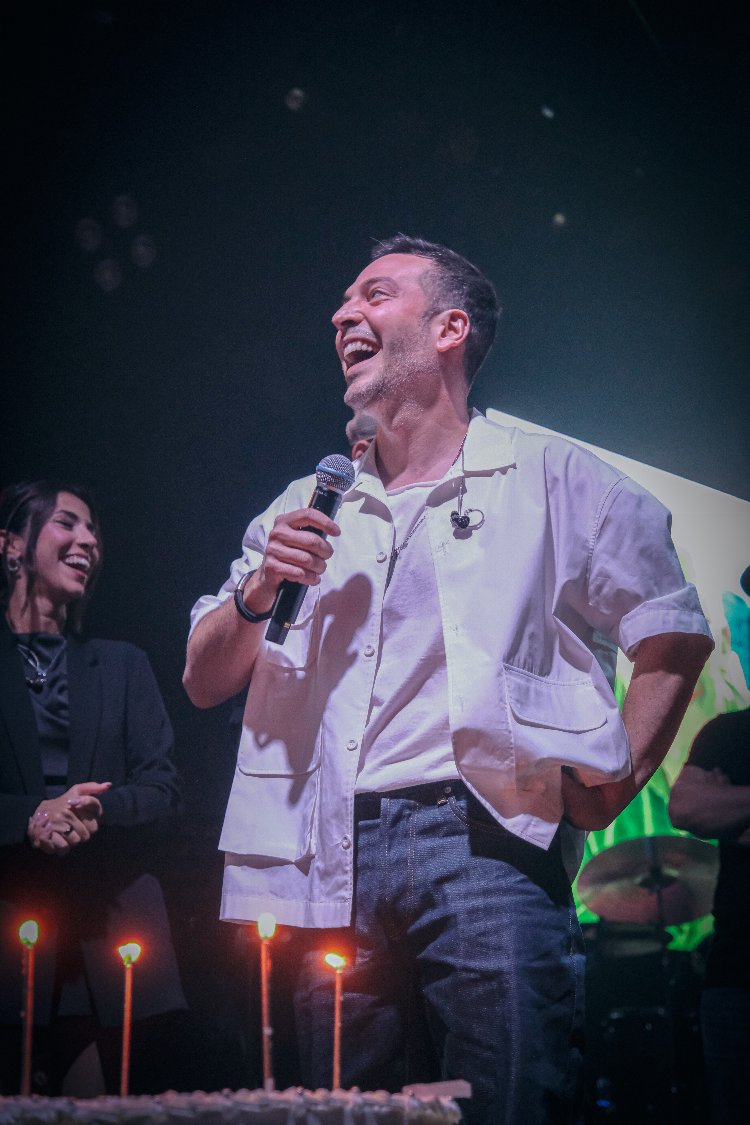 Gecenin sürprizi ise Koç’un ekibinden geldi. Şarkı söylediği esnada sahneye gelen doğum günü pastası eşliğinde hayranları ıslık ve alkışlarıyla tezahürat yaptı.