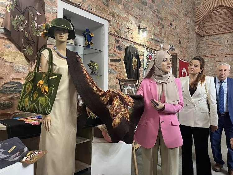 Sergiyi ziyaret eden misafirlere ürünlerin yapım aşamalarından, ortaya çıkan ürünlerin çıkış hikayelerinden bahseden Geleneksel Keçe Sanatı Kursu Öğretmeni Filiz Gocuk, ‘’Sergimizde, geleneksel Türk nakış desenleri keçe yünü ile işlenerek ve üç boyutlu tablolar yapılarak yepyeni bir sanata dönüşmüştür. Örtüler, yelekler, hırkalar, şallar ve aksesuarlar da çok özel tasarımlar uygulanmıştır’’ dedi.