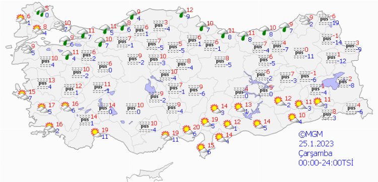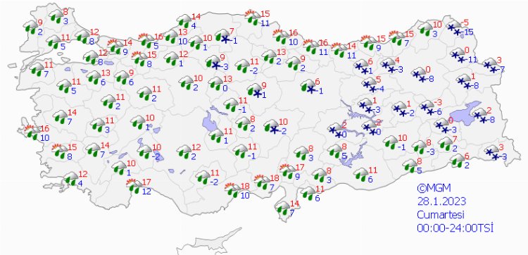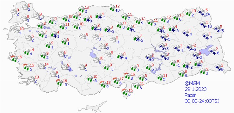 Önemli bir değişiklik olmayacağı yurtta bugün havanın mevsim normallerinin üzerinde seyretmeye devam etmesi tahmin ediliyor. Rüzgarın ise genellikle kuzey ve kuzeydoğu yönlerden hafif, ara sıra orta kuvvette esmesi bekleniyor. Ancak Meteoroloji’nin 5 günlük hava tahmin raporuna göre önce yağmur ardından kar geliyor.