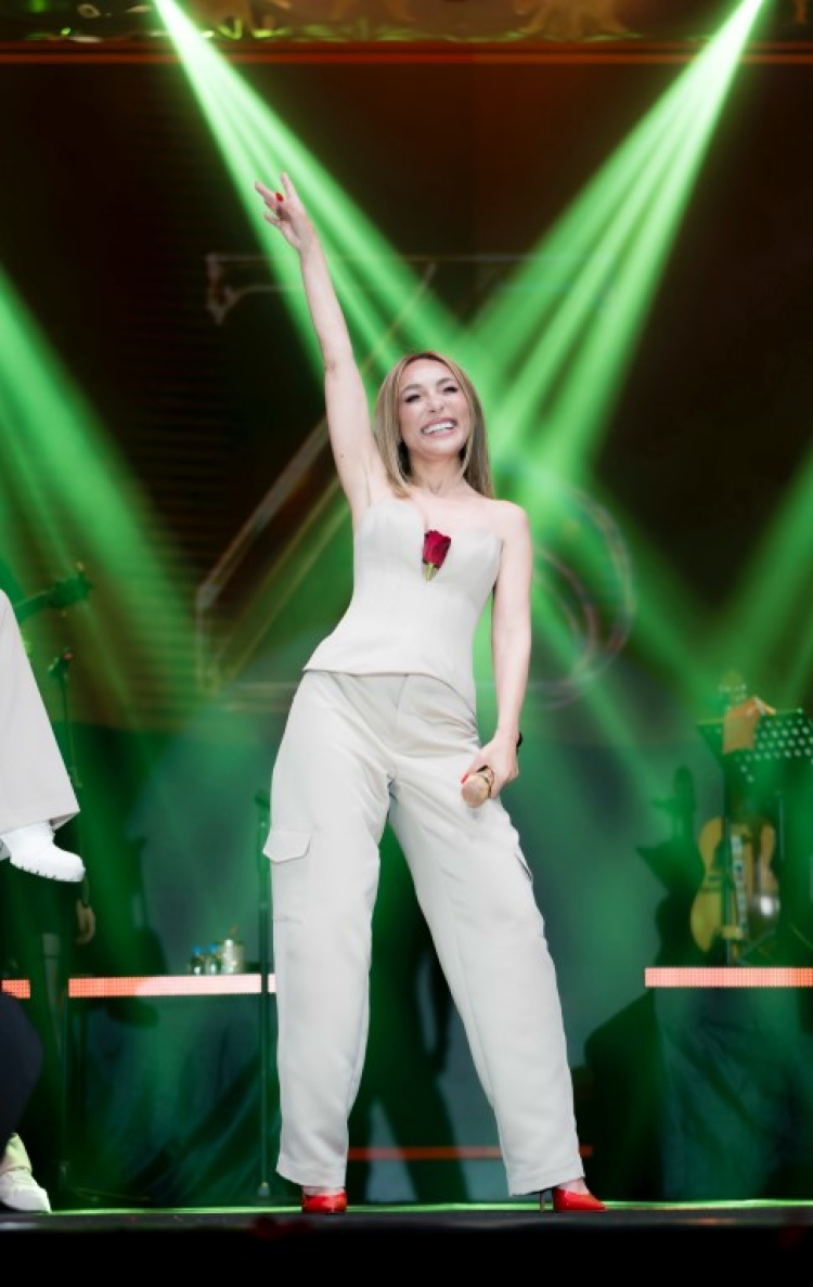 Gecede kostümleri ünlü tasarımcı Eda Güngör imzası taşıyan Ziynet Sali, zarif ve modern tarzıyla dikkat çekti. Özellikle göğsündeki gül detayıyla bütünleşen şık kombini, geceye damgasını vurdu. Saç rengindeki yenilik ve sahneye özel kıyafet tercihleriyle stiline taze bir dokunuş katan sanatçı, hem modaya hem de bayramın ruhuna uygun bir görünüm sergiledi.