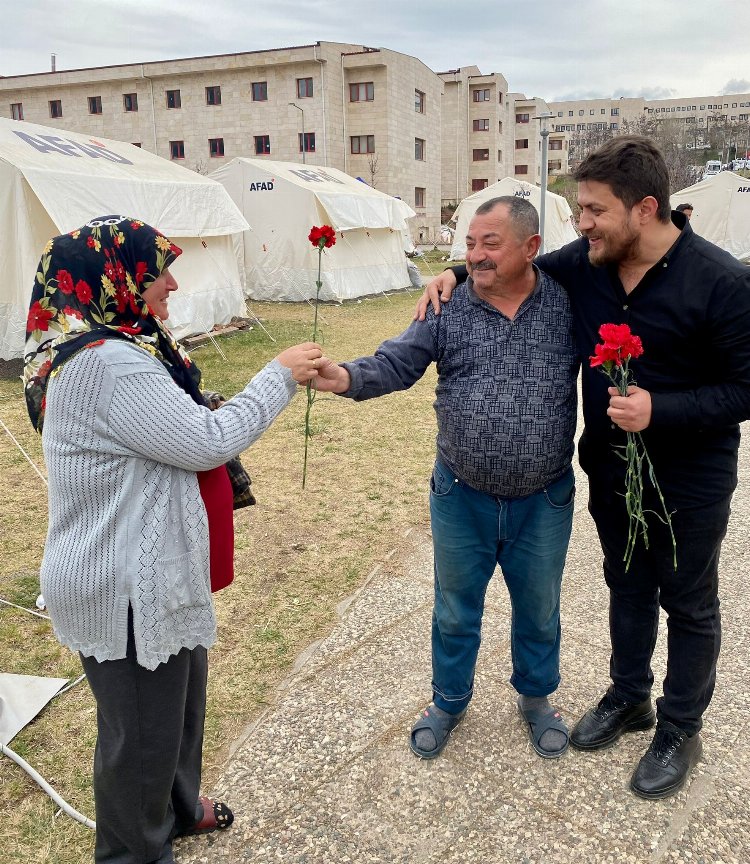 “Onbinlerce insanımızı kaybettiğimiz Kahramanmaraş merkezli depremlerin acısı halen ilk günkü gibi taze. Kaybettiğimiz canlarımızı unutmamız mümkün değil. Ancak yaralarımızı sararak, geride kalan emanetlere sahip çıkmak adına mücadelemizi sürdürüyoruz. Bugün de 8 Mart dolayısı ile depremde evini, yuvasını, sevdiklerini kaybeden kadınlarımız zor günlerden geçiyor. Bu günümüzü başımız tacı dirayeti ile destan yazan kadınlarımıza ayırdık. Yüzlerinde bir tebessüm oluşturabilmek için bir karanfil hediye ederek acılarını paylaştık. Kayıplarımızın telafisi mümkün olmasa da yaralarımızı birlikte saracağız”.