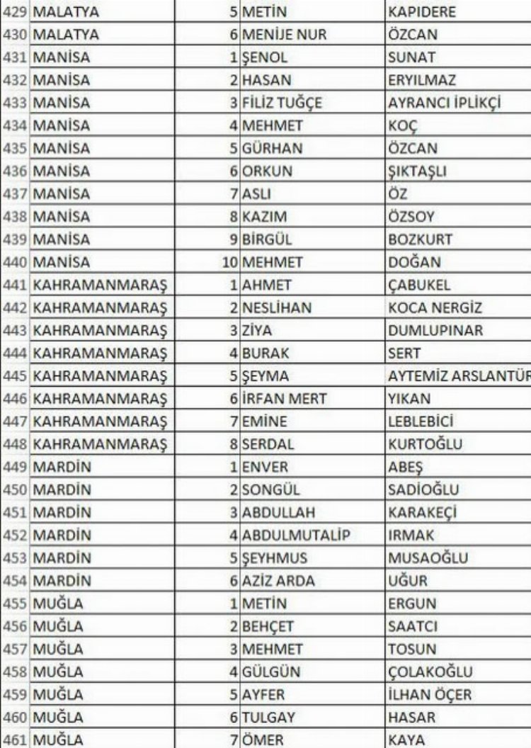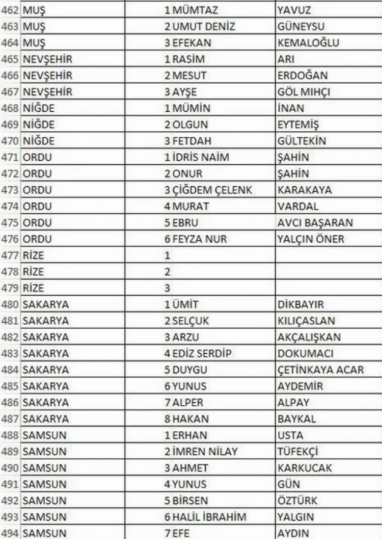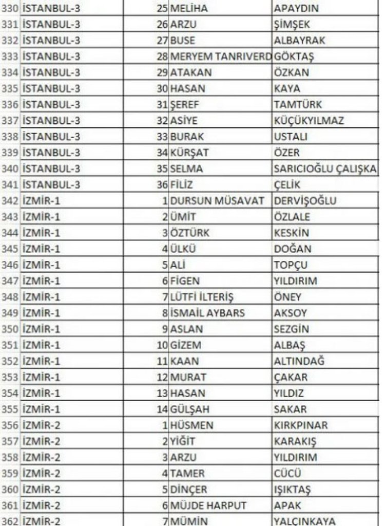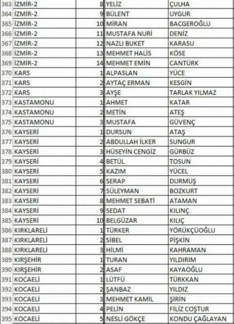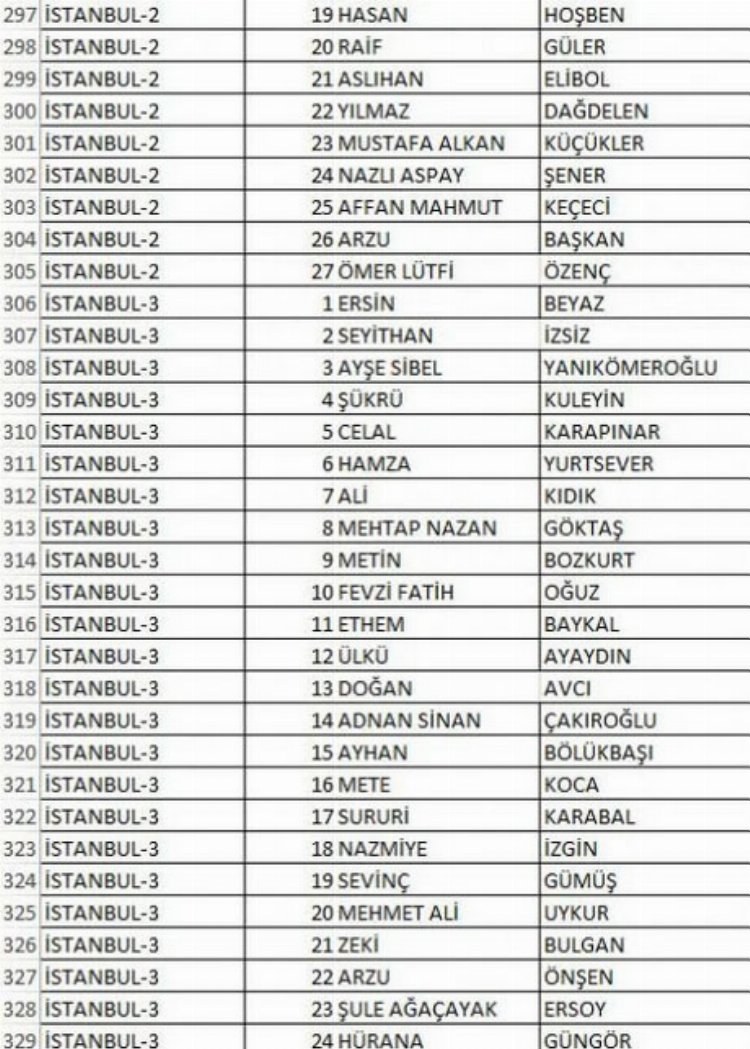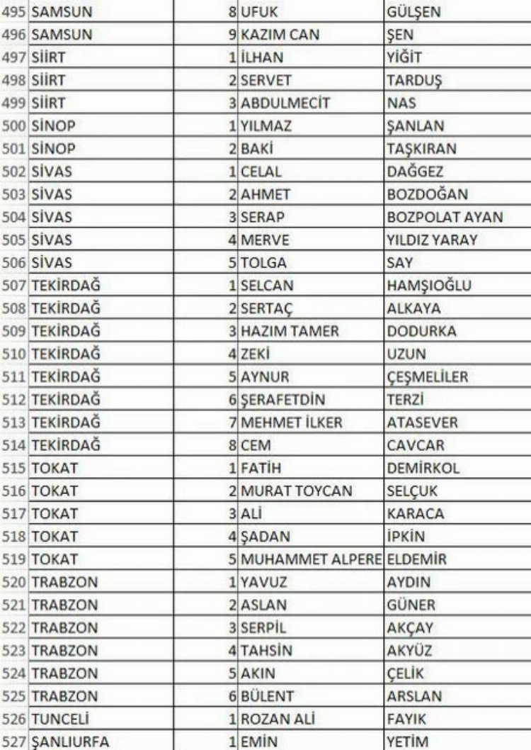 TESLİM EDİLEN ADAY LİSTESİNE GÖRE İL İL ADAYLAR ŞÖYLE