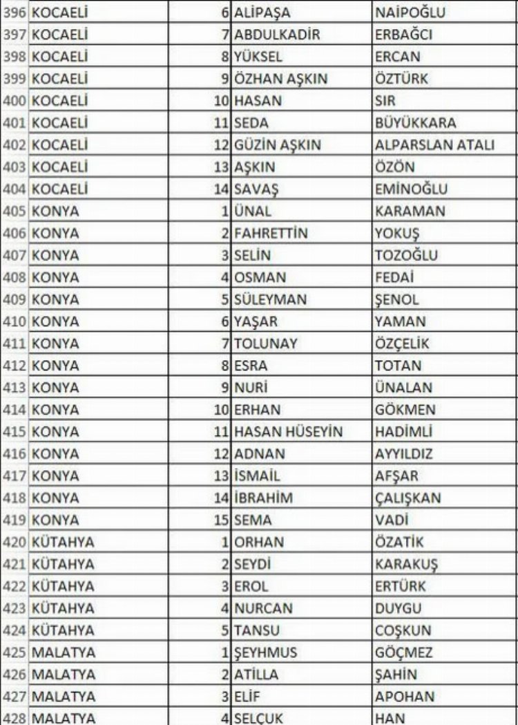 Adana Adıyaman Afyon Ağrı Aksaray Amasya Ankara Antalya Ardahan Artvin Aydın Balıkesir Bartın Batman Bayburt Bilecik Bingöl Bitlis Bolu Burdur Bursa Çanakkale Çankırı Çorum Denizli Diyarbakır Düzce Edirne Elazığ Erzincan Erzurum Eskişehir Gaziantep Giresun Gümüşhane Hakkari Hatay Iğdır Isparta İstanbul İzmir K.Maraş Karabük Karaman Kars Kastamonu Kayseri Kırıkkale Kırklareli Kırşehir Kilis Kocaeli Konya Kütahya Malatya Manisa Mardin Mersin Muğla Muş Nevşehir Niğde Ordu Osmaniye Rize Sakarya Samsun Siirt Sinop Sivas Şanlıurfa Şırnak Tekirdağ Tokat Trabzon Tunceli Uşak Van Yalova Yozgat Zonguldak