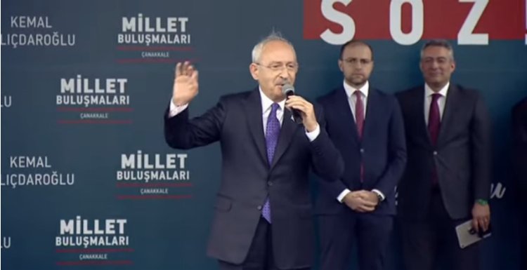 Çanakkale’de ‘Millet Buluşması’nı gerçekleştiren Millet İttifakı Cumhurbaşkanı adayı ve CHP Genel Başkanı Kemal Kılıçdaroğlu, Cumhurbaşkanı Yardımcısı adayları İstanbul ve Ankara Büyükşehir Belediye Başkanları ile birlikte ‘söz’ verdi. “Aşınız, işiniz olacak” diyen Kılıçdaroğlu, “Sizin hayalleriniz Bay Kemal’in hedefi olacak” dedi.