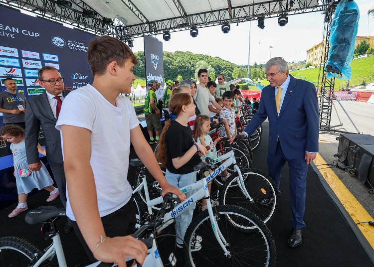 Bisiklet çekilişleri öncesi Bisiklet Vadisi’ndeki sporseverlere seslenen Başkan Ekrem Yüce, “Sakarya’mız bir dünya şehri olmuştur. Sakarya’mız aldığı ‘Bisiklet Dostu Şehir’ ve ‘Avrupa Spor Şehri’ unvanlarını layıkıyla taşıyor. 26 gün süren bisiklet şölenimizde uluslararası birçok organizasyona ev sahipliği yaptık. Bugünde ilk kez bir BMX Avrupa Kupası yarışlarını Sakarya’da gerçekleştirdik. 26 ülkeden 150 sporcu Sakarya’da şampiyonluk için pedal çevirdi. Sakarya’mız her geçen gün diğer alanlarda olduğu gibi spor alanında da adını dünya sahnesine çıkarıyor ve önemli spor organizasyonlarına ev sahipliği yapıyor. İnşallah bu alanda desteklerimize devam edeceğiz” diye konuştu.
