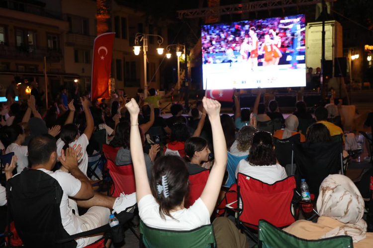 Mudanya Belediyesi’nin Mütareke Meydanı’nda düzenlediği etkinlikte, Filenin Sultanları’nın Dominik Cumhuriyeti’ni set vermeden yendiği maçı vatandaşlar büyük bir coşkuyla izledi.