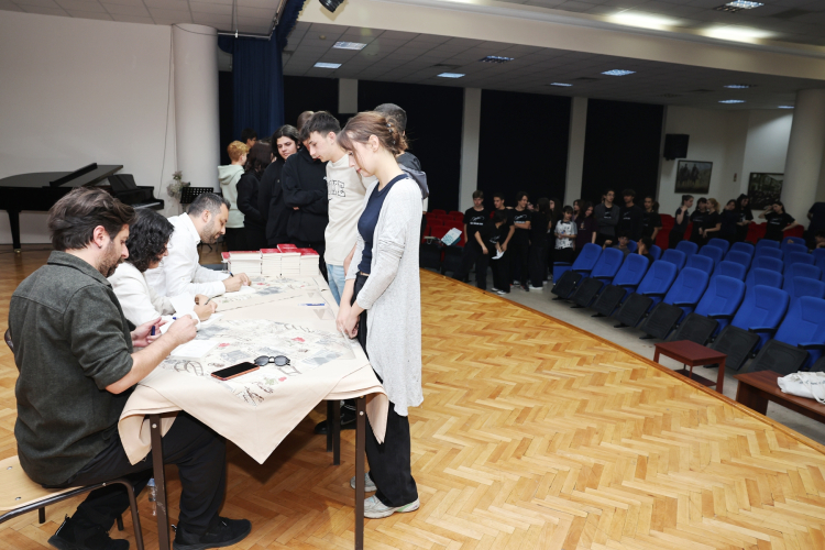 Söyleşi sonunda yazarlar, Nilüfer Belediyesi tarafından basılan ve okulun öğretmenleri ile öğrencilerine armağan edilen kitaplarını imzaladılar.